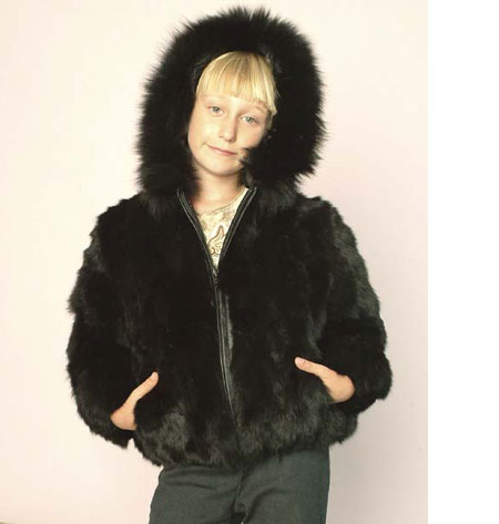 | Toddler's & Junior full fox fur jacket | Junior pelted rabbit fur jacket w/hood |